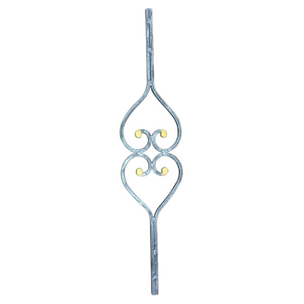Wrought iron ornaments using 10×10 mm plain square bar. SNUB scroll ends, Height: 914 mm (3′), Width: 190 mm (7.8″) Weight: 1.8 kg.