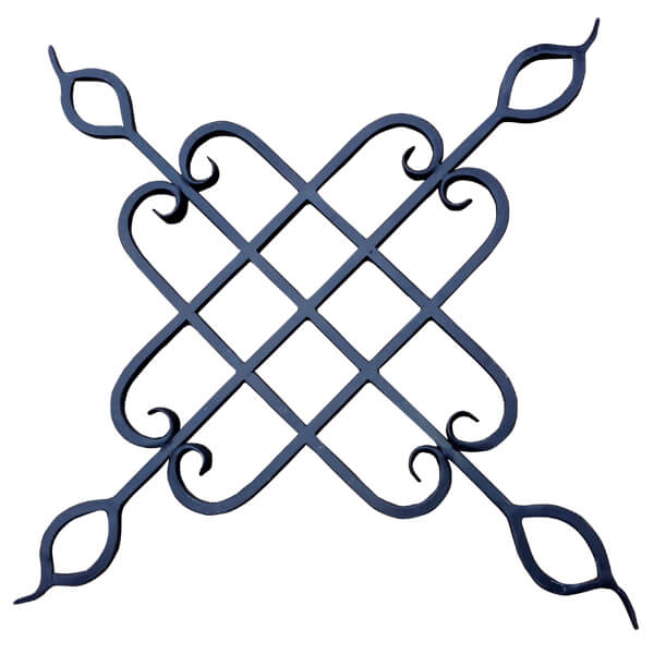 Wrought iron ornaments using 10×10 mm plain square bar. Fishtail scroll ends, Height: 675 mm (2’3″), Width: 675 mm (2’3″) Weight: 1.8 kg. Use: GATE, WINDOW, RAILING etc design.