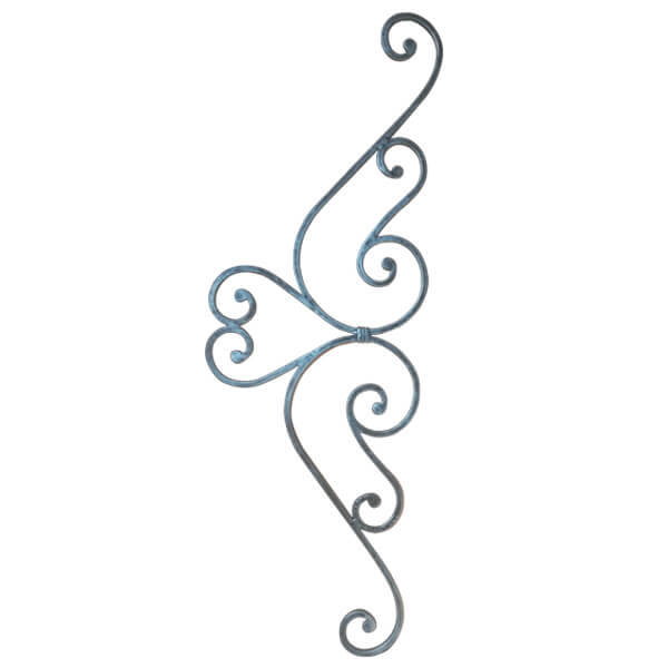 Wrought iron ornaments using 10×10 mm plain square bar. SNUB scroll ends, Height: 325mm (1’1″), Width: 1000 mm (3’3″‘) Weight: 4 kg.