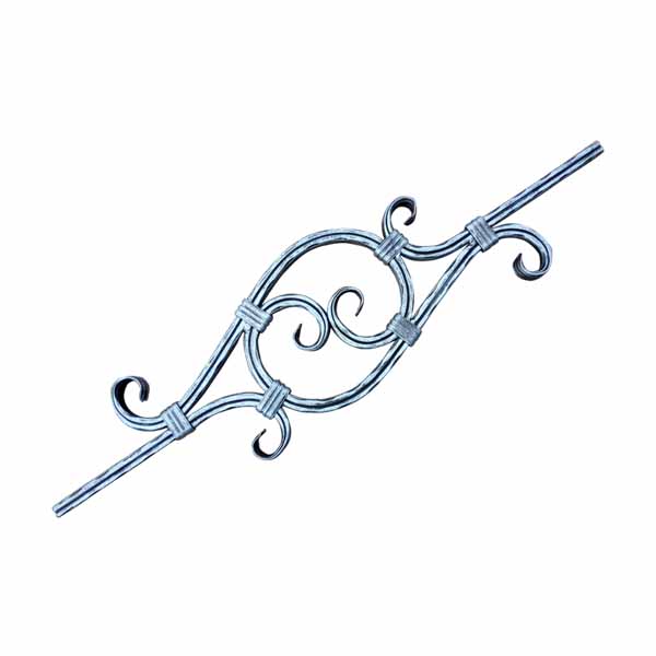 Wrought iron ornaments using 12×12 mm emboss square bar. FISHTAIL scroll ends, Height: 600 mm (2′), width: 150 mm (6″) Weight: 2 kg.