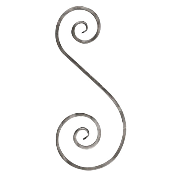 “S” Scroll using 8×8 mm square bar, Height:540 mm (21.25″), Width:245 mm(9.63″), Fishtail Scroll End, Metal: Mild Steel. You can use it for gate, window, Railing etc design.