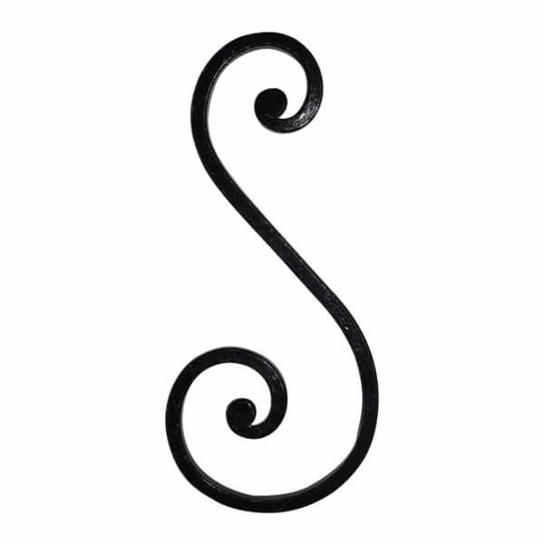 “S” Scroll using 12×12 mm square bar, Height:250 mm, Width: 100 mm, SNUB Scroll End, Metal: Mild Steel. You can use it for gate, window, Railing etc design.